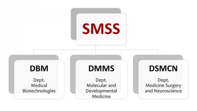 The School of Medicine and Health Sciences (SMSS) is comprised of the Departments of Medical Biotechnologies (DBM), Molecular Medicine and Development (DMMS), and Medical, Surgical, and Neuroscience Sciences (DSMCN). These departments, each specializing in various medical fields, are interconnected through disciplinary affinity, teaching initiatives, and collaborative service management. They have jointly undertaken a three-year sustainability project aimed at optimizing the utilization of financial, instrumental, and human resources.